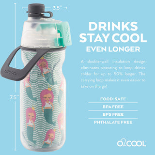 The Mist 'N Sip 20oz bottle offers a unique 2-in-1 function. It's high flow rate of water make it easy to sip and it's fine mist cools you down quickly. Perfect for hot days, Mist 'N Sip's double-wall insulation keeps beverages colder for up to 50% longer and eliminates condensation. Grab a Mist 'N Sip and head out hiking, bicycling, to team sporting events, or any of your favorite activities!